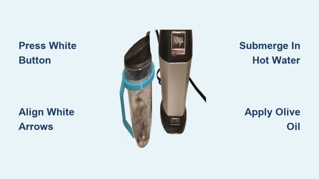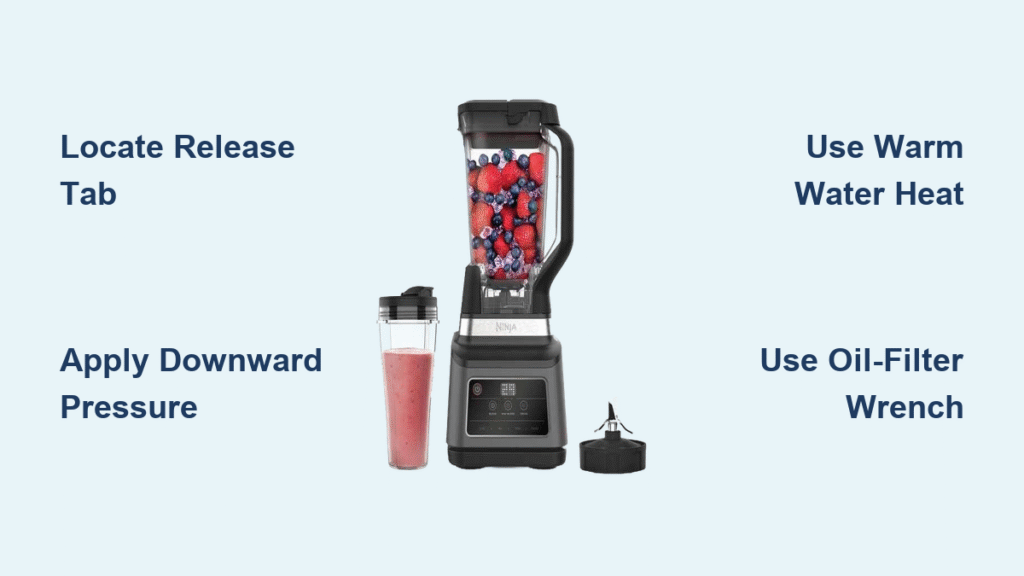 Your Ninja blender cup won’t budge—either locked to the motor base or the blade assembly refuses to unscrew. This frustrating